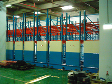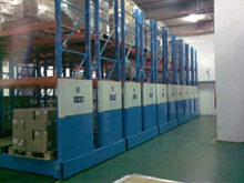 以電力驅動使整組鋼架作橫向移位之設計,只需預留單條作業走道,大幅增加配置容量,有效增加儲存空間。